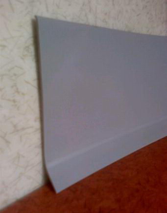 述明:提供多种式样软质墙脚线以配合各种地板与墙脚间收边,安装于地板施工后,包住墙体之内阴角或外角,以达到墙脚收边美观之目的。使用胶水施工。